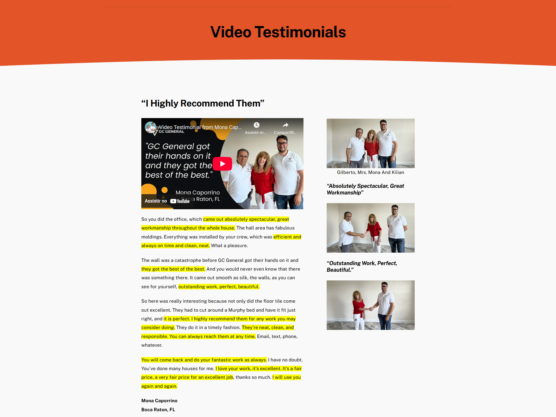 The video testimonial thing was genius. At first I'm thinking, "Really? We need to do videos now?" But Antonio walked us through it, even came out to film the first few with us. Now we've got like 40+ videos on our site. When potential clients see that page, they're sold before we even meet them. It's like having our best customers selling for us 24/7.